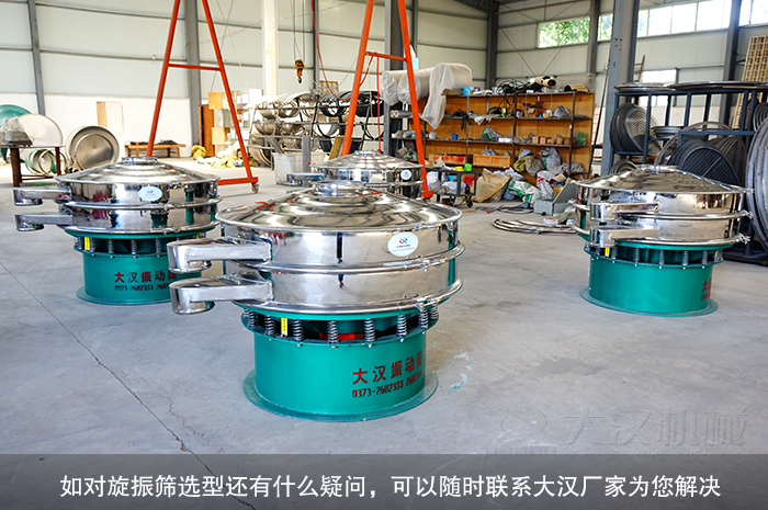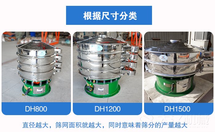 選擇與自己產量適配的旋振篩十分重要,合適大小的旋振篩能夠為生產提供更高的效率。目前市場上的旋振篩型號眾多,也比較齊全,常見直徑尺寸的有600mm,800mm,1000mm,1200mm,1500mm,1800mm和2000mm不等。